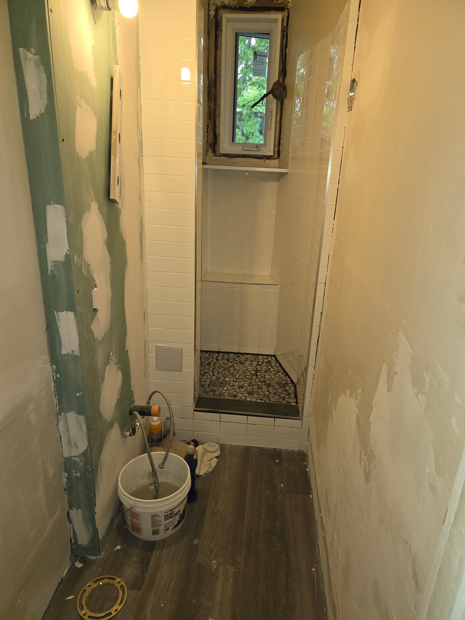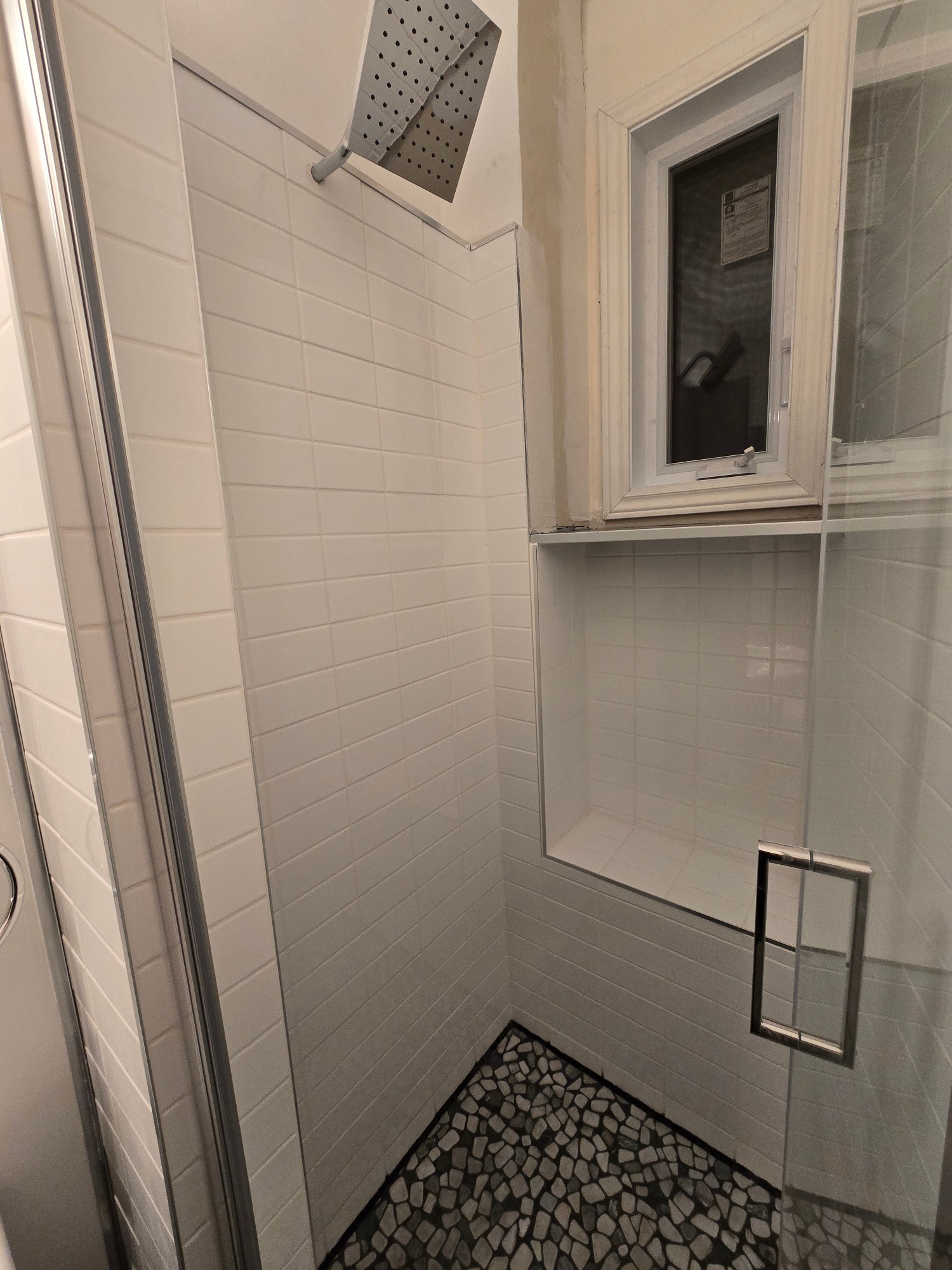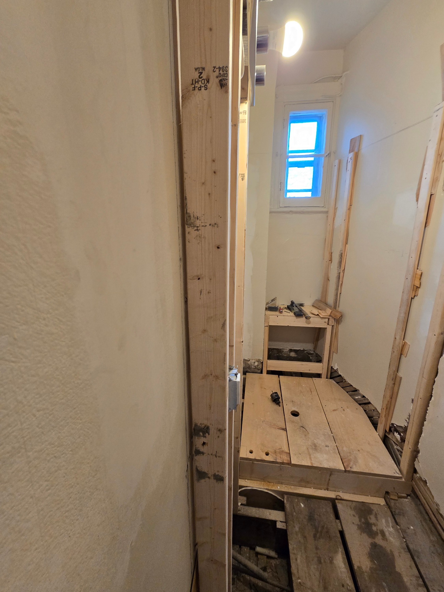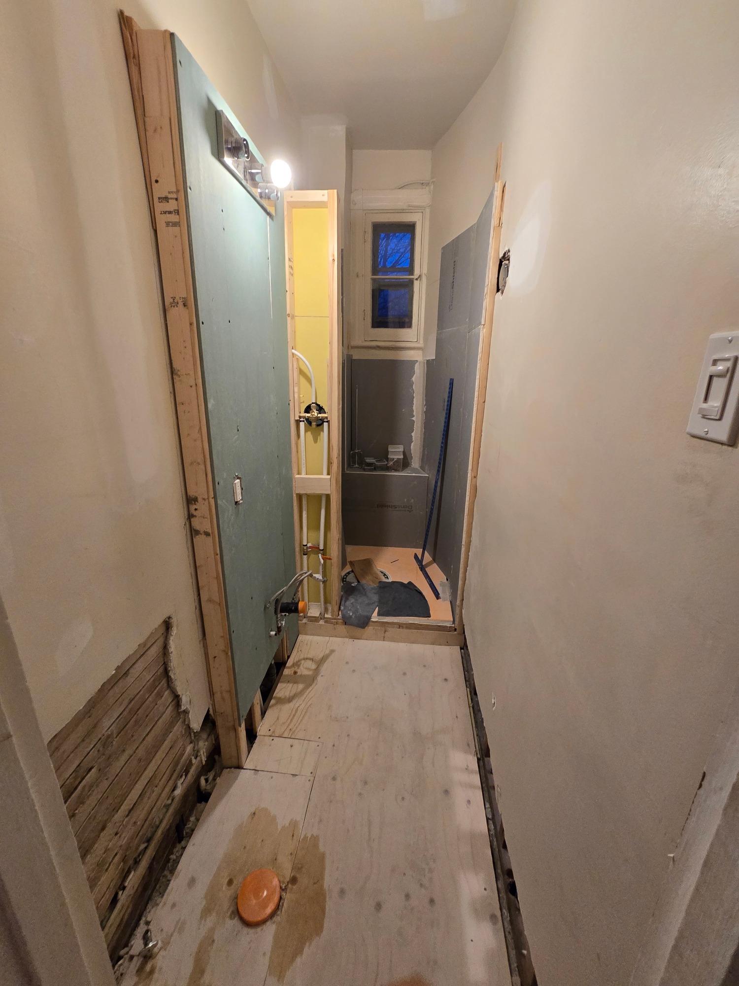 From this 3 x 10 foot space, where just a bathtub and toilet resided, we created this cozy bathroom with custom shower enclosure complet with sink, storage and everything one expects in a bathroom... but the tub had to be sacrificed!