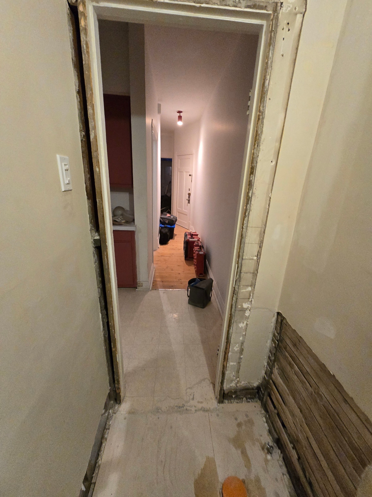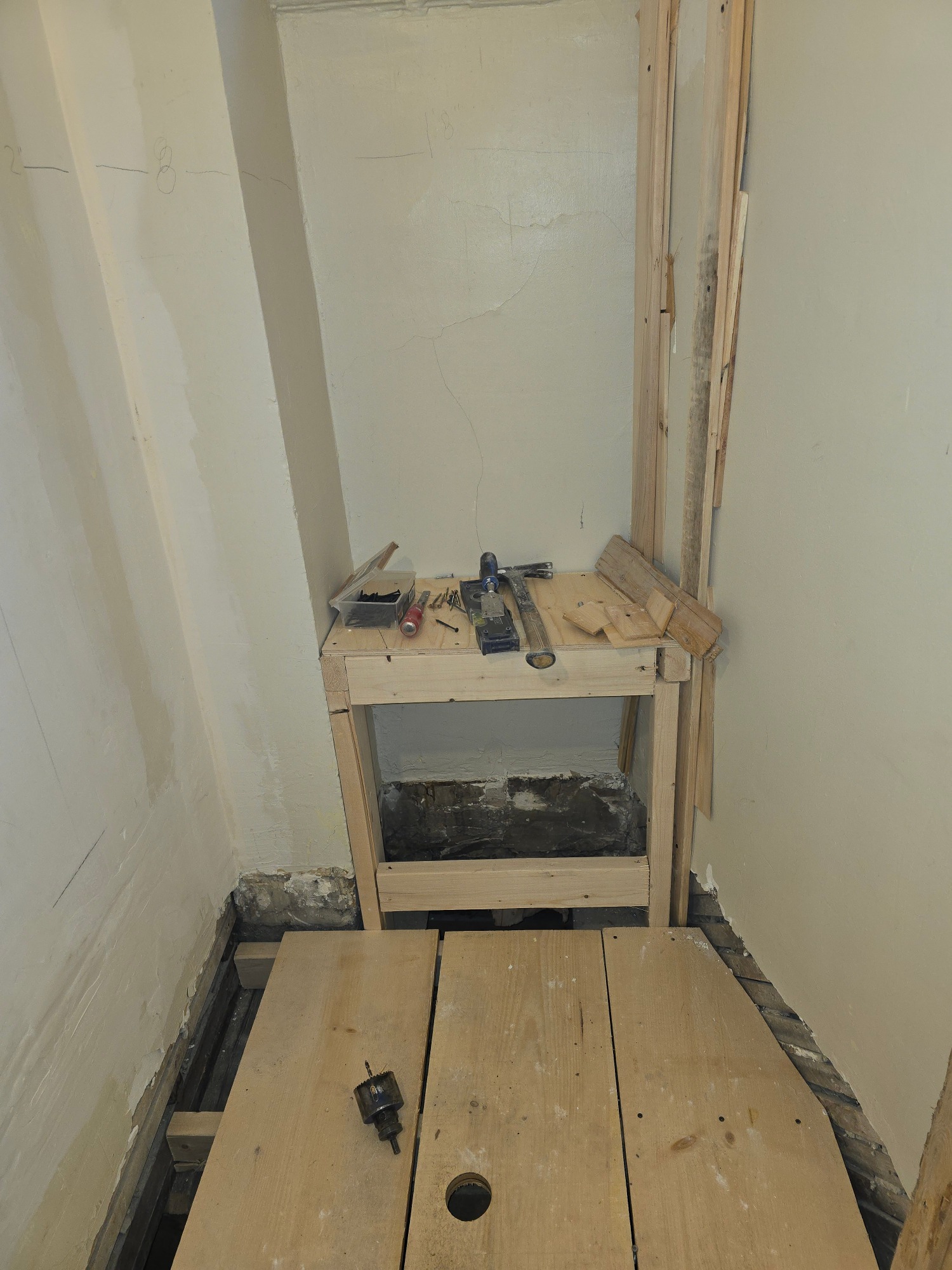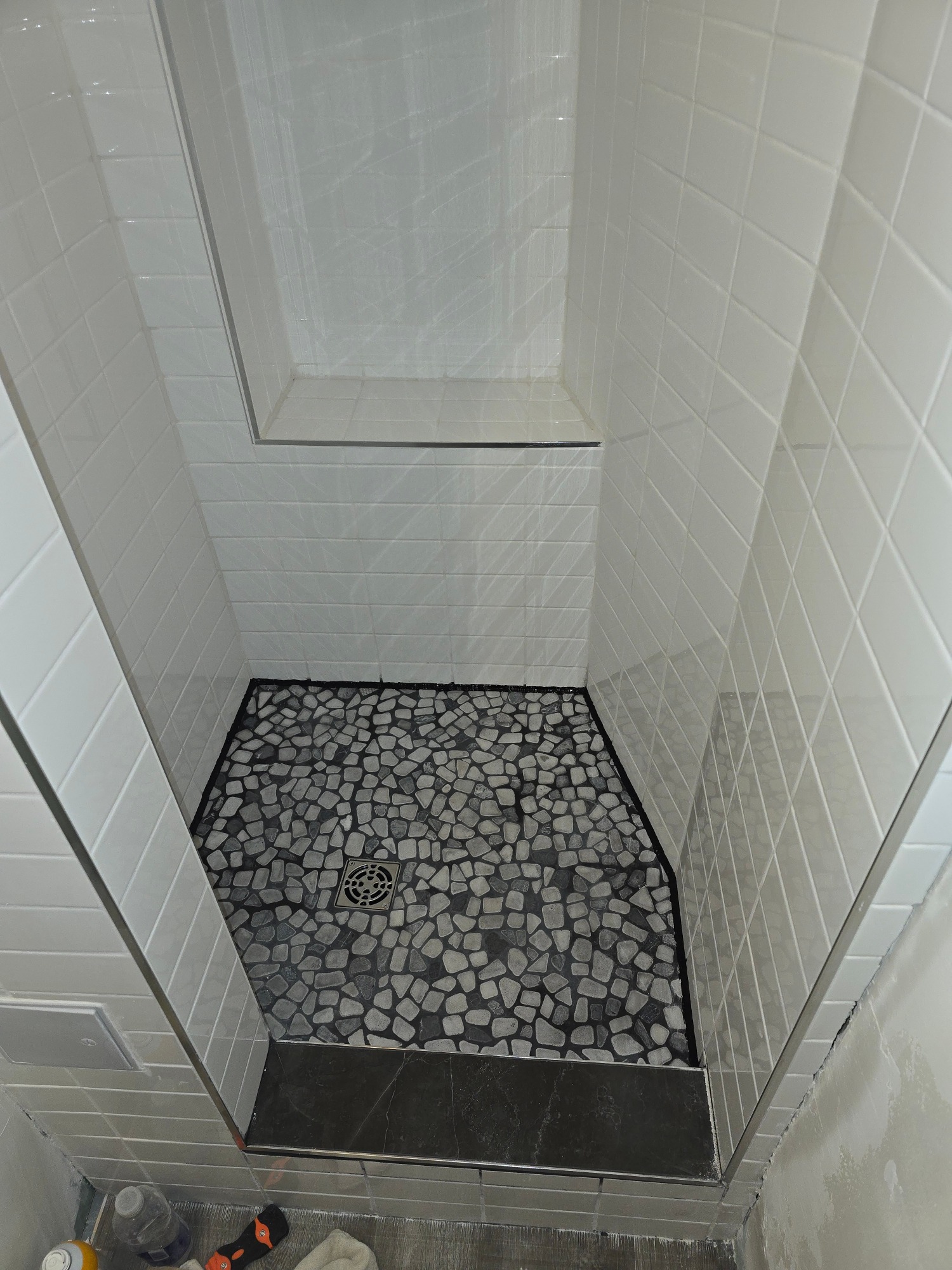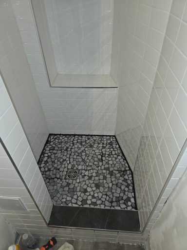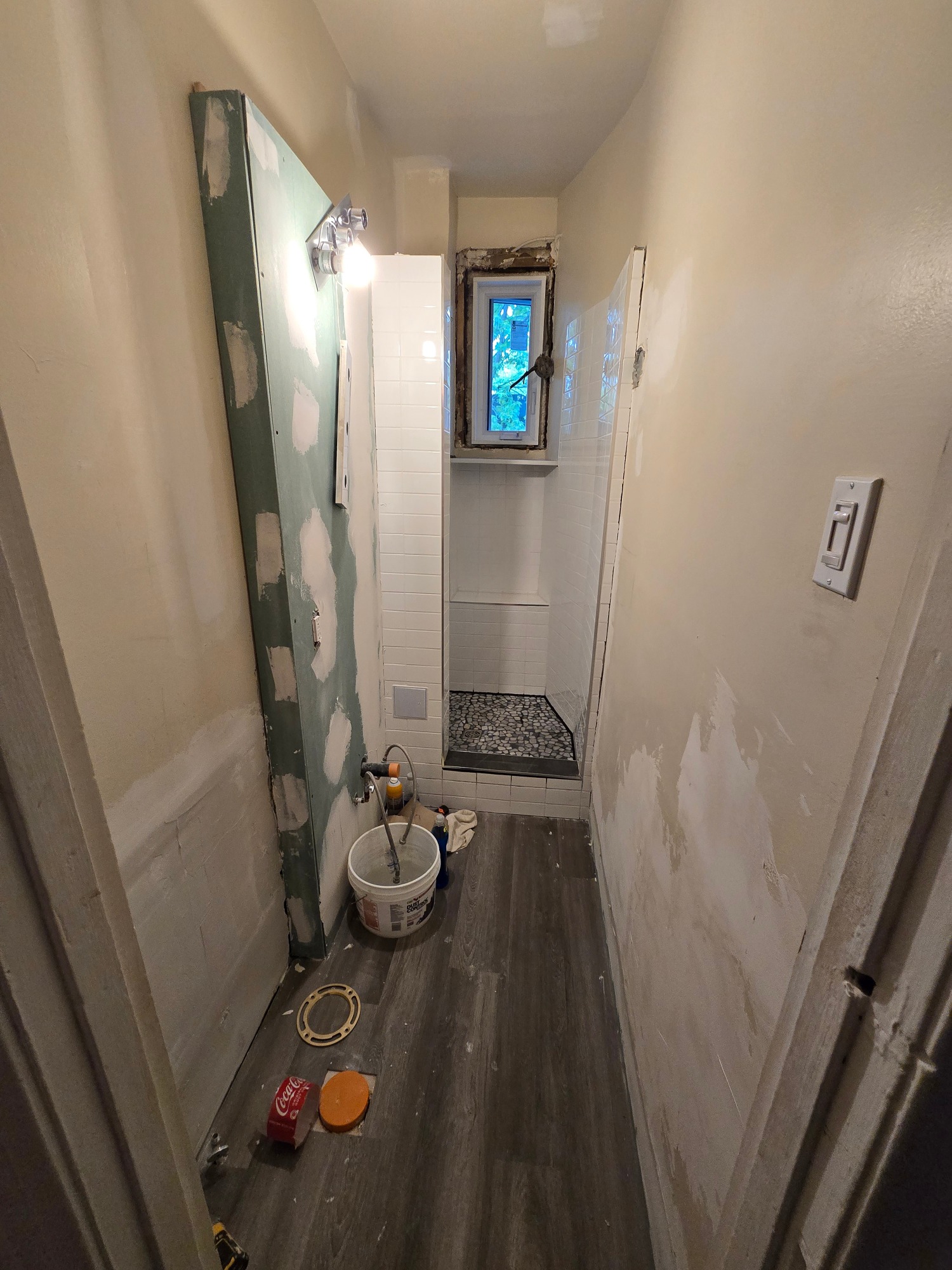 From this 3 x 10 foot space, where just a bathtub and toilet resided, we created this cozy bathroom with custom shower enclosure complet with sink, storage and everything one expects in a bathroom... but the tub had to be sacrificed!